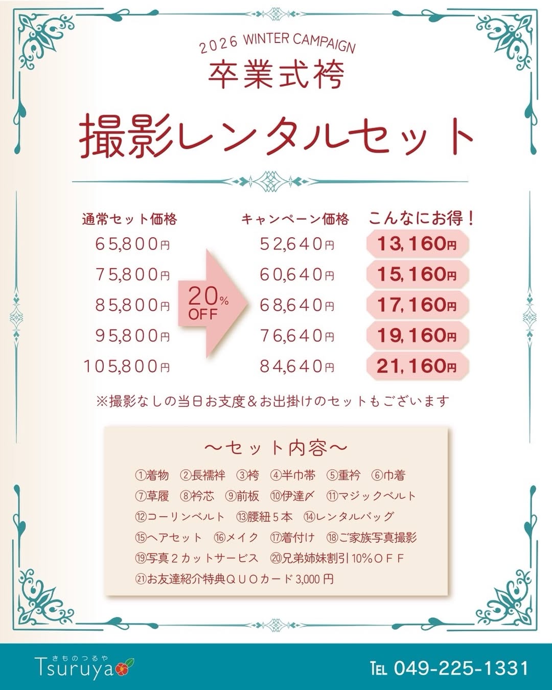 ①卒業式袴 レンタル&フォトセット20%OFF